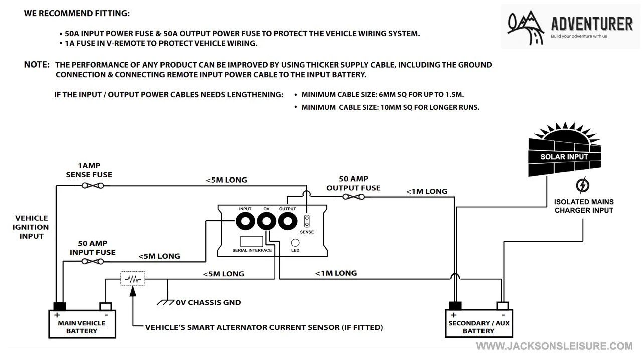 The Adventurer battery to battery charger from Jacksons is the ideal companion for your campervan or motor home vehicle battery and leisure battery, utilising the leisure battery to keep your engine battery in a boosted state. Â