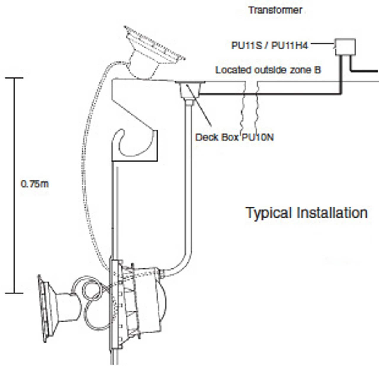 Standard Sealed Beam U/W Light – C/W transformer & Deck Box