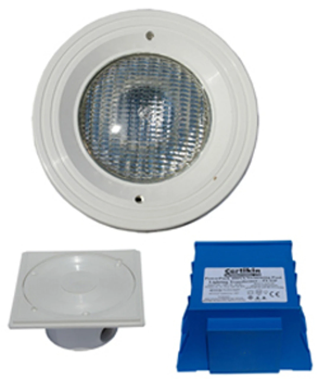 Every Certikin Underwater Swimming Pool light comes complete with a factory fitted clear polycarbonate safety cover and includes a finishing facia ring.