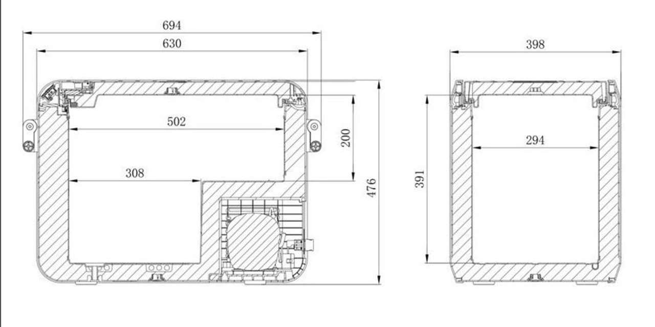 - Dimensions: depth 694 mm, height 476 mm, width 398 mm