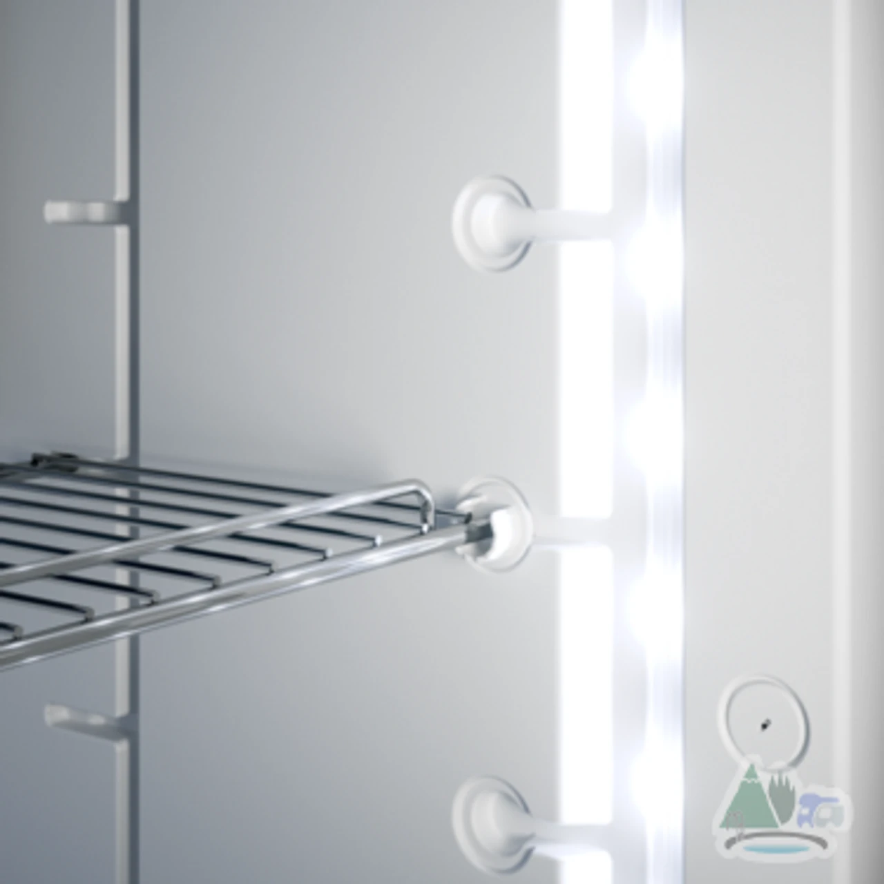 This 12v 240v compressor fridge is powerful enough to outclass any camping fridge. Their latest compressor technology is efficient enough to provide cooling at ambient temperatures of up to 38 degrees, and features Dometic Smart CI-Bus technology, allowing your fridge to interact with other smart controllers. An integrated ventilation system ensures your Dometic RCD 10.5T camping and caravan compressor fridge requires no additional or external vents, making it easy and risk-free to install and fit, even in marine environments.