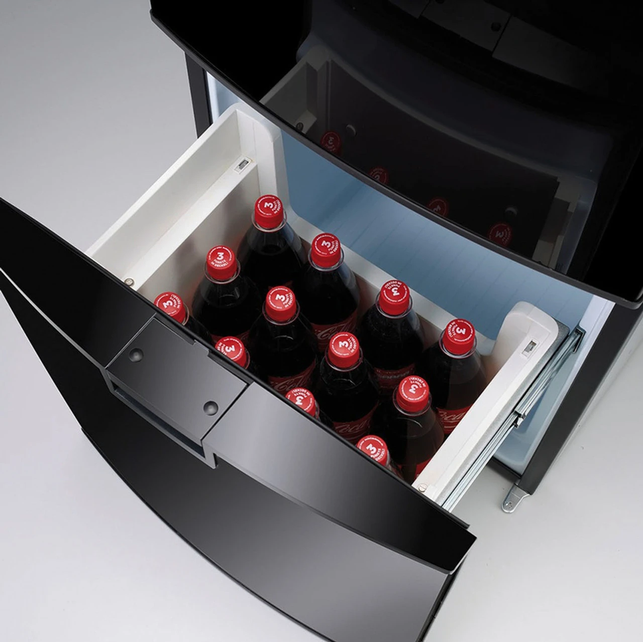 - 55-litre drawer fridge which can be opened separately offers ample space to store bottles in secure, easy to grab upright position (no need to open fridge door to get them out! Saving on energy)