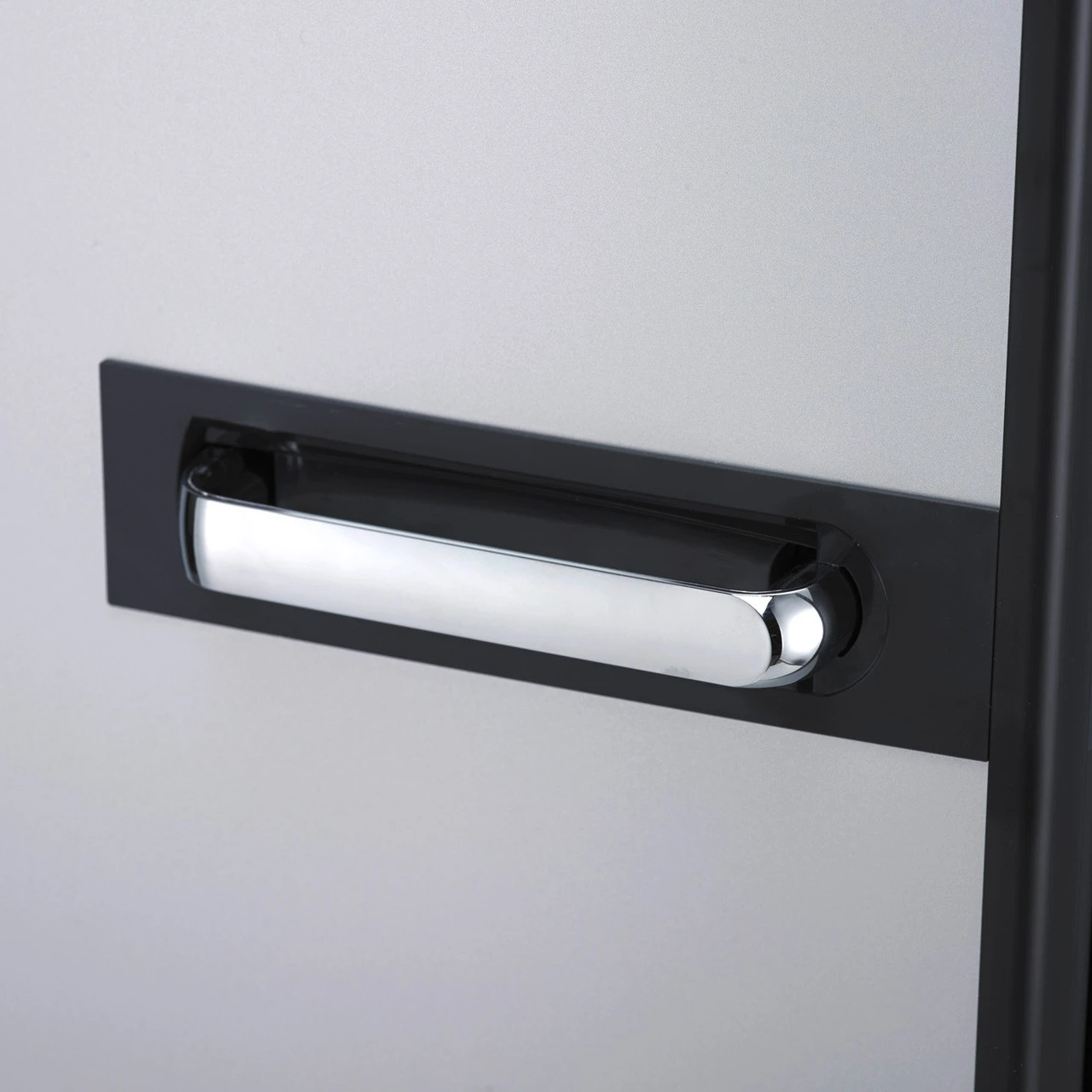 The two pioneers of Dometic’s latest motorhome & caravan fridge freezer generation have integrated door handles (see pictures), and, despite their extremely compact outside dimensions the 9-Series motorhome & caravan fridge freezer has ample capacity inside. The fridge cabinet is organised by short and long trays, drawers with partitions and bottle holders as well as four height-adjustable door racks, a removable 12-litre freezer compartment and bright LED strip lights add the usual finishing touches we have all come to expect from Dometic.