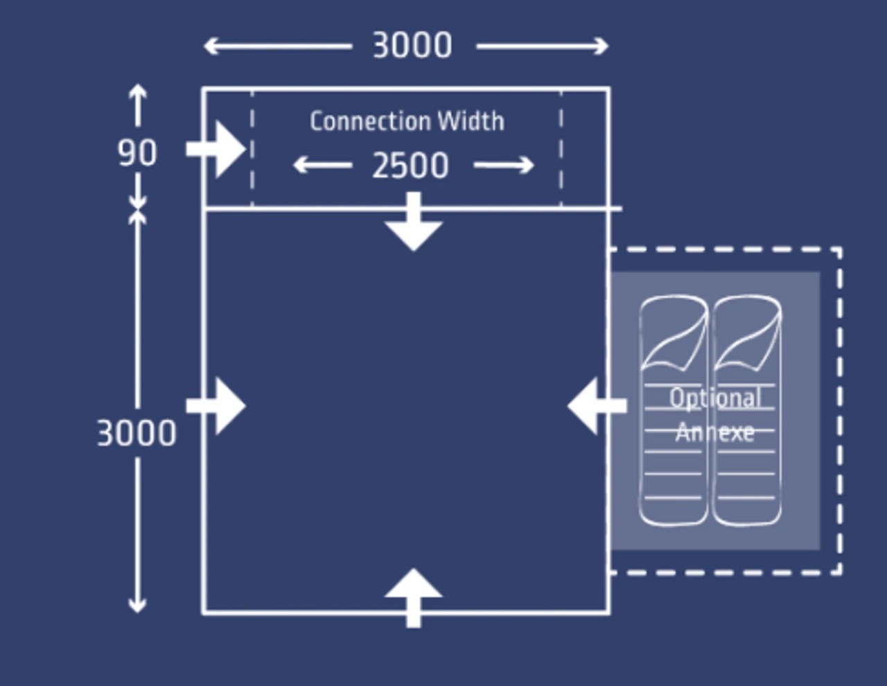 Like the Cross AIR awning itself, this annexe uses air tube technology to achieve its structure and shape. The annexe has a single inflation point, independent of the main awning, allowing for simple and easy installation.