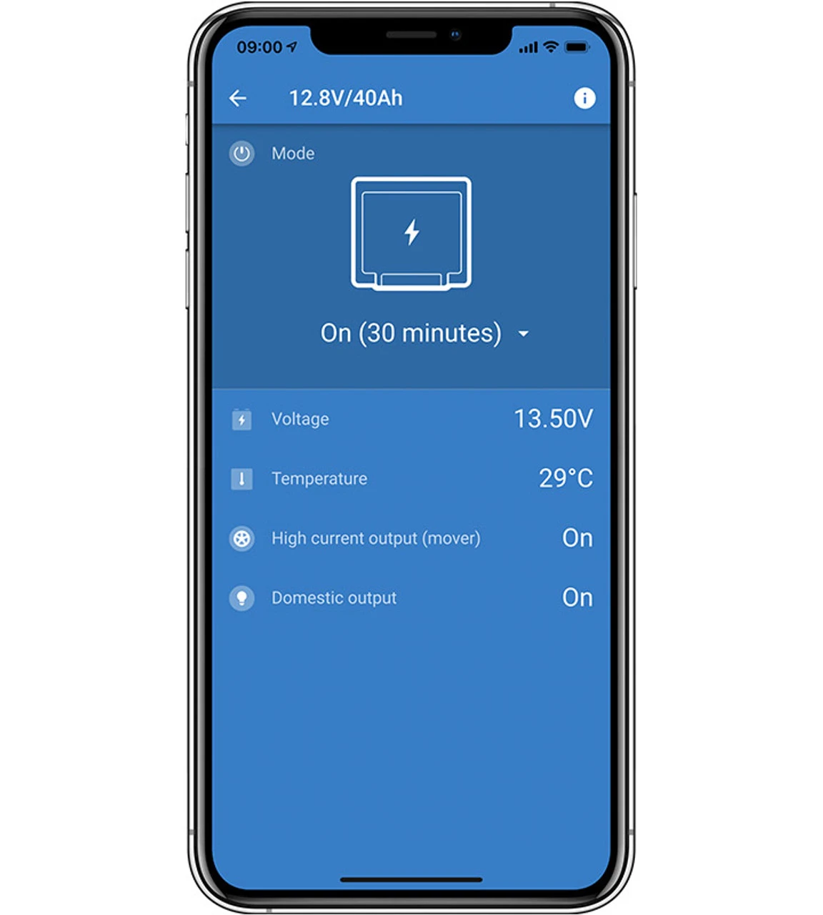 The battery includes a dual-colour LED and push button which indicates charge level, and also indicates any error codes for easy diagnosis of issues in your system. You can also engage a Storage mode for the Peak Power Pack, which reduces self-discharge, allowing it to be kept in storage for a year. It’s also compatible with Victron’s VE.Direct system for easy mobile monitoring on your smartphone.