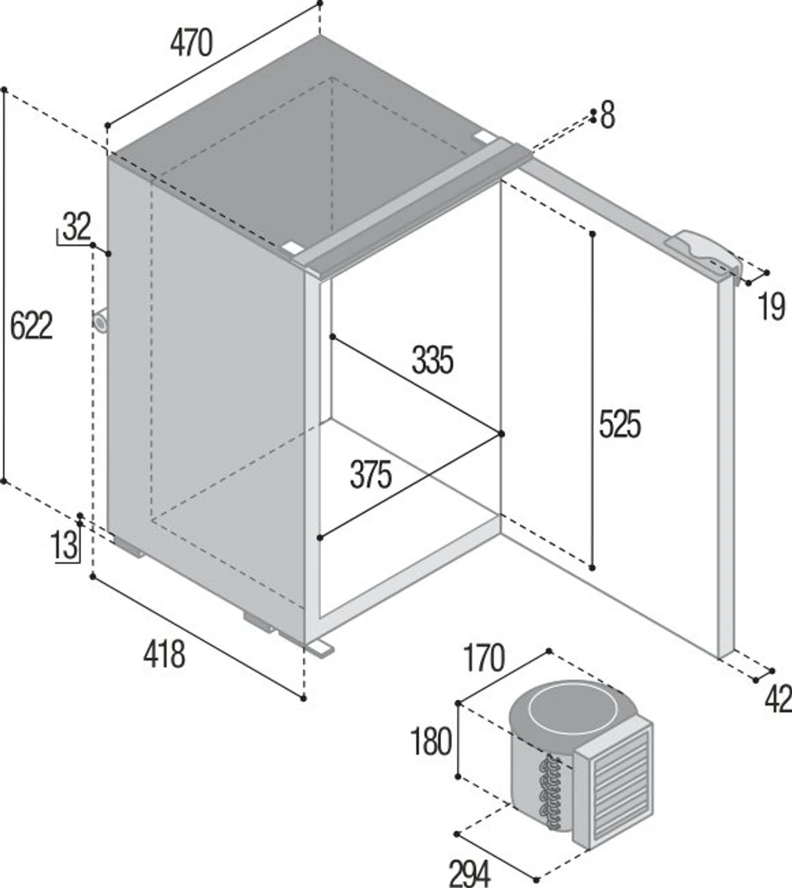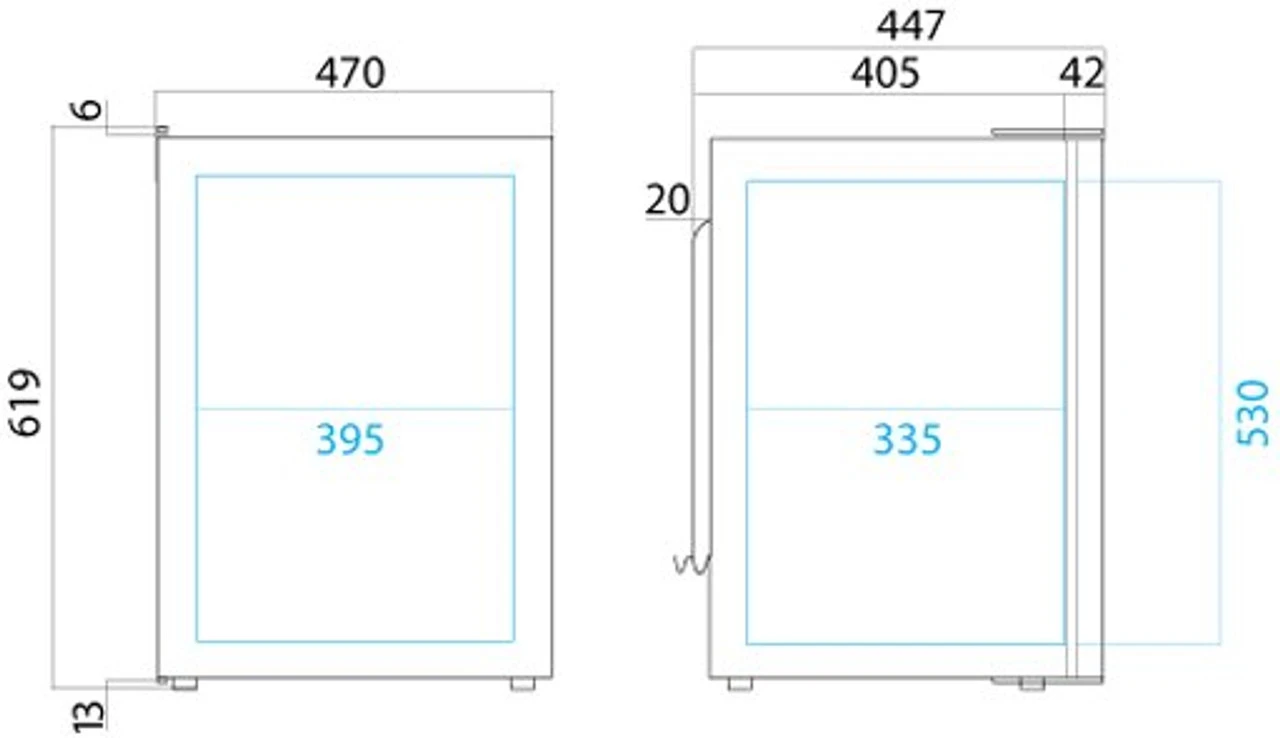 - H 619 x W 470 x D 418mm (460 mm flush)