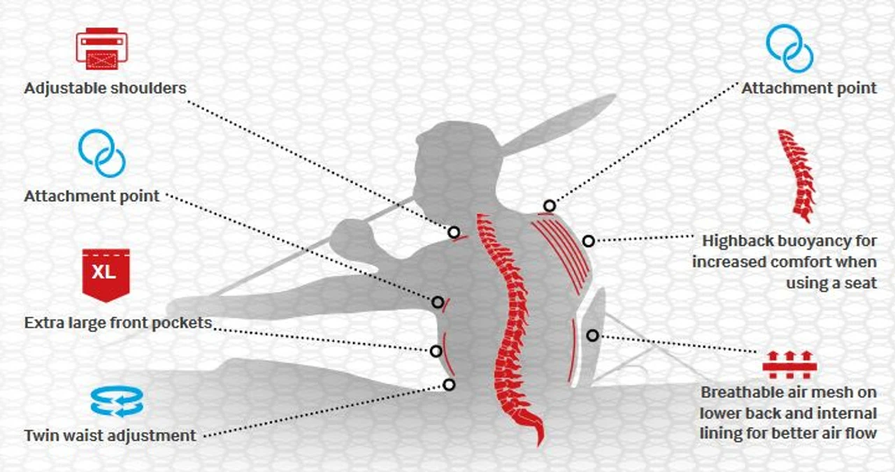 In addition, the High Back 60N PFD provides breathable air flow technology helping you stay cool on even the warmest of days and a sculpted foam design helping to ensure the buoyancy aid moulds to the shape of your body to ensure comfort all day long.